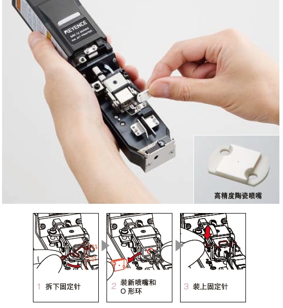 喷码机的故障大多是由喷嘴堵塞而引起的。MK-U 系列无需工具即可进行喷嘴更换,万一发生故障,仍可尽量将生产线停止时间控制在超小范围。