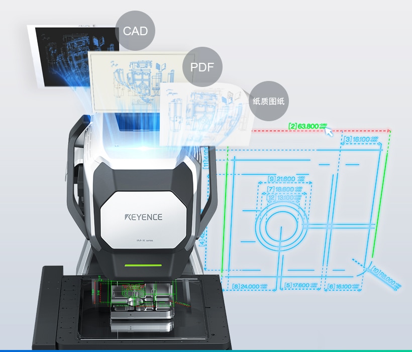 从CAD/PDF/纸质图纸中自动获取测量部位和公差等信息。无需一边翻看图纸一边费力地创建测量设定程序。