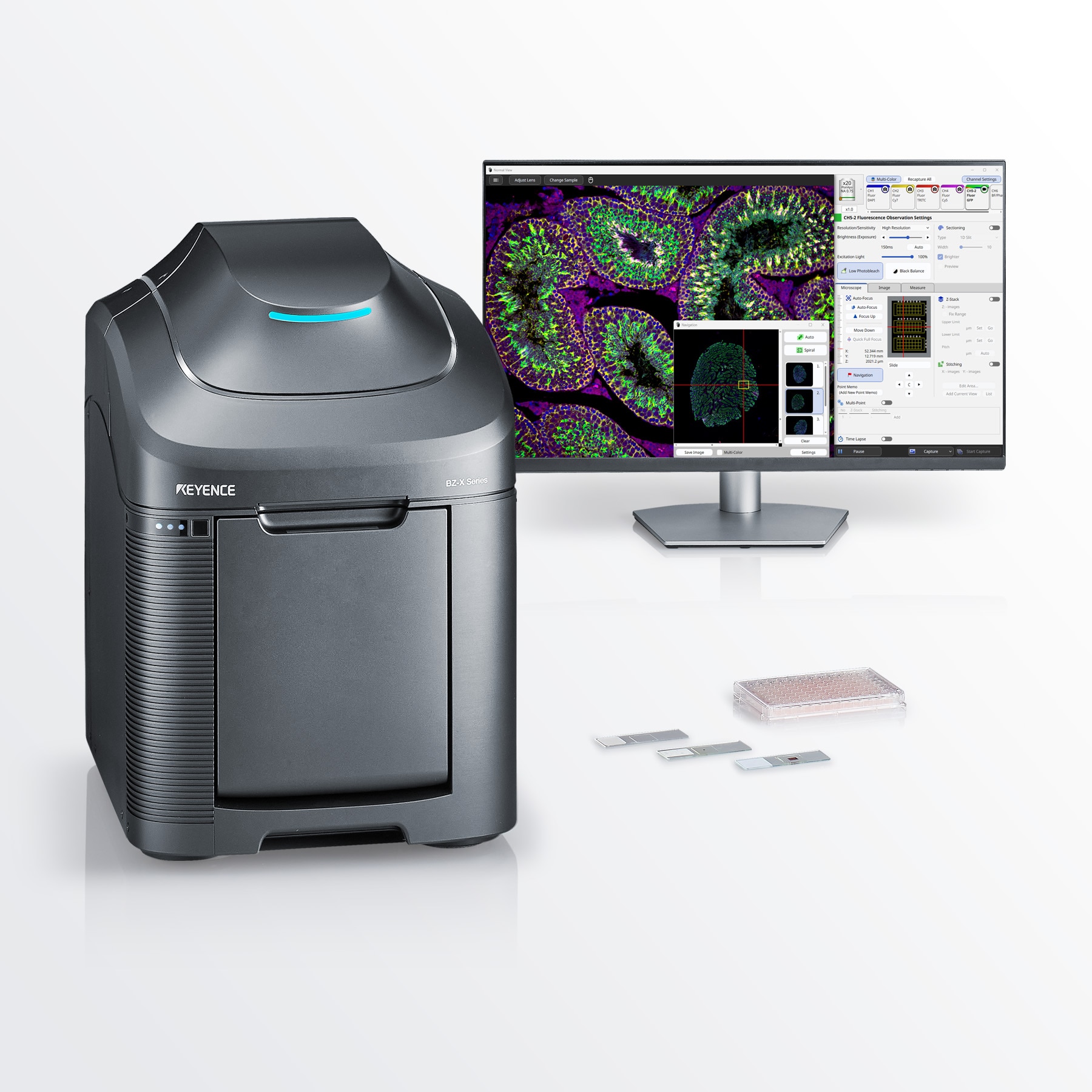 BZ-X1000 系列是一款一体化荧光显微镜,具有先进的观察功能、全电动操作系统,可实现即时目标采集、高级成像和尖端分析功能。 与传统型号相比,成像速度快5倍,分辨率高3.5倍,有助于提高研究人员的工作效率。 无需暗室,占地面积只有 A3纸大小。 配备单色/彩色可切换的1000万像素CMOS相机,可进行高分辨率观测。 大型电动云台可立即接近所需位置,高速自动对焦和拍摄条件再现功能可确保观察结果不受操作员的影响。 除了无荧光模糊的高分辨率成像和多孔板整个表面的自动批量成像外,还可按设定的时间间隔进行明视野、荧光和相衬的延时成像。 此外,对荧光显微镜至关重要的图像分析量化功能也实现了自动化,具有丰富的分析功能,包括三维分析、动态分析和自动时间序列量化。