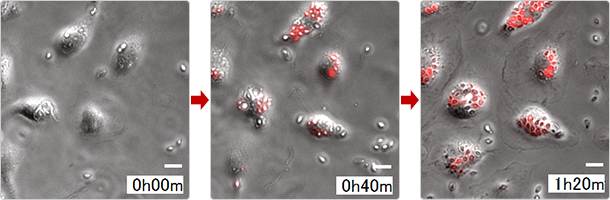 相差图像与荧光图像的叠加延时
