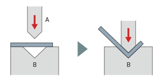 弯曲加工泛指将金属或树脂等材料进行弯曲的加工。弯曲的方法有力学上施加外力折弯的方法,以及通过加热等方式使其变形弯曲的方法。此外,使用模具对金属等进行弯曲的加工是冲压加工的一种,也被称为“折弯加工”。由于通过施加压力使其变形,因此也会产生板厚变化等。