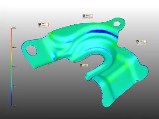 此外,通过导入三维CAD数据,可以轻松地将测量数据与设定值进行比较,以确认偏差。通过色谱图显示将与设定值的偏差可视化,能判断厚度的最小值、最大值及偏差等。