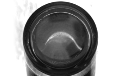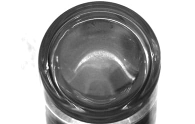 拍到荧光灯的光在瓶内的折射,导致难以检测瓶口部分。